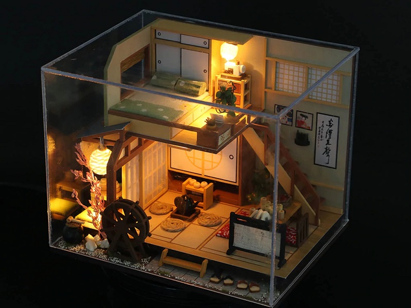 Karuizawa’s forest holiday es una casita de madera armable, el cual contiene diversas piezas de madera, papel, tela y metal, Iluminación LED, manual de instrucciones ilustrado, pintura y pegamento.